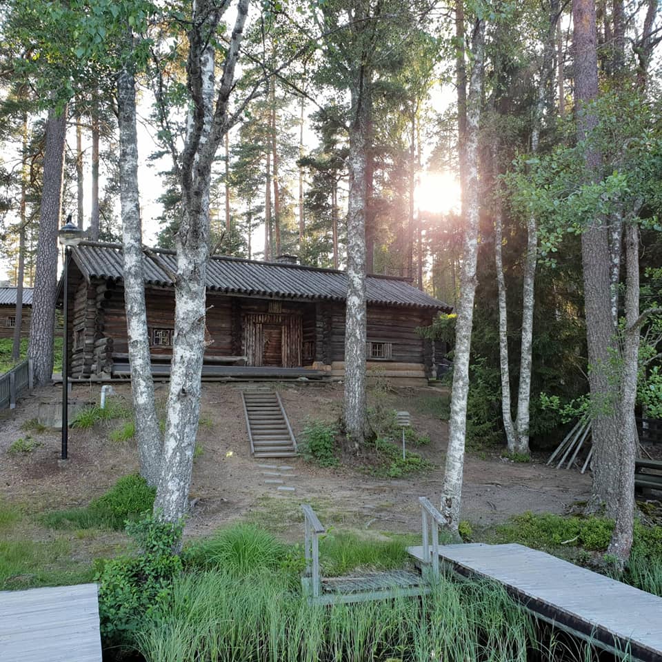 Jykevistä kelohongista rakennettu Marskin sauna tarjoaa historiansa lisäksi mukavat löylyt sekä yksityinen ranta-alue kutsuu saunojaa pulahtamaan Punelian kirkkaaseen veteen!